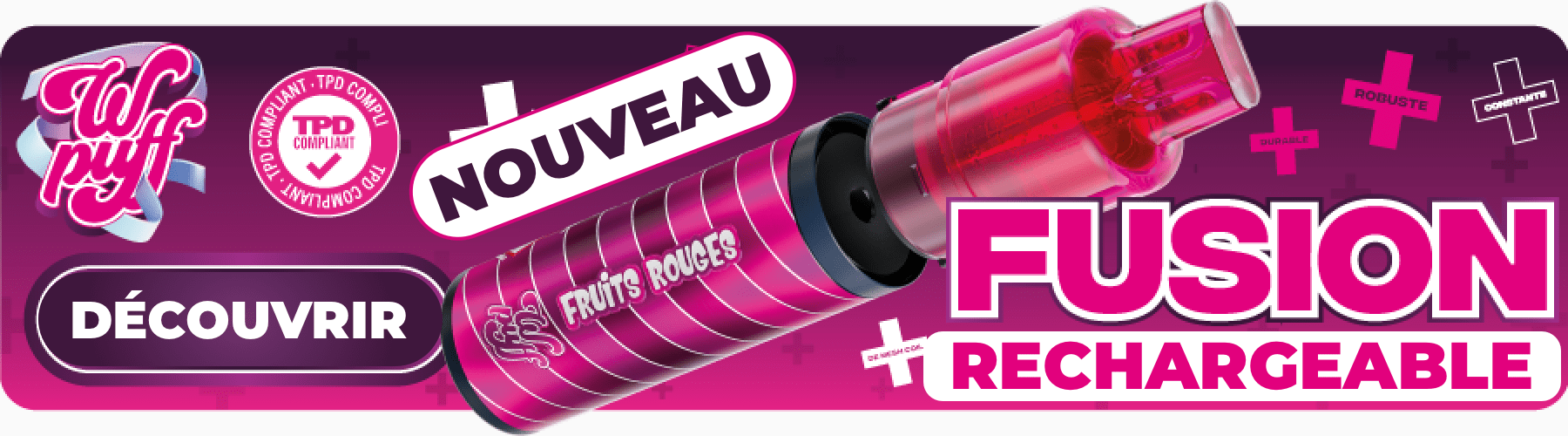 Wpuff Fusion 2.0 – Liquideo, puff 7000 bouffées à double saveur avec écran LED et recharge USB-C